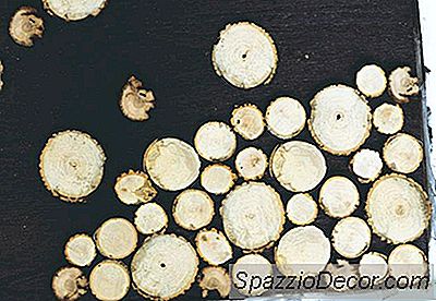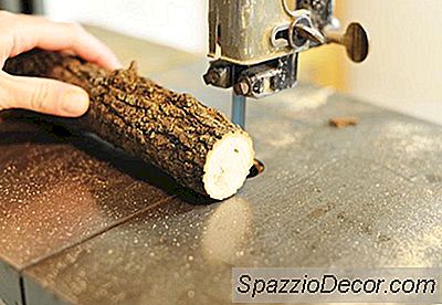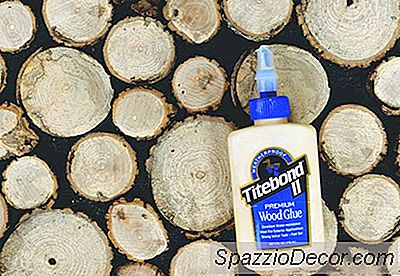 Trin 4: Når mønsteret af træstykker er på plads, lim dem ned med træ lim på bagsiden af hver cirkulær snit. Lim alle stykker ned og lad tørre. Sand af eventuelle ru kanter eller hængende bark fra skæringerne.