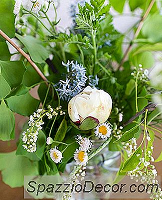 Fyld tomme mason krukker eller simple vaser med eventuelle ekstra blomster og grønne du har efter din vigtigste arrangement er færdig.