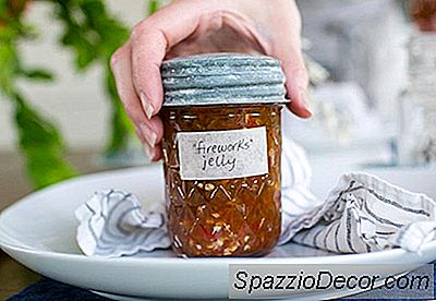 Jeg lavede "fyrværkeri" marmeladefavoritter fra jalapeño og paprika, påfyldning dem med vintage zinklåg og håndskrevne etiketter.