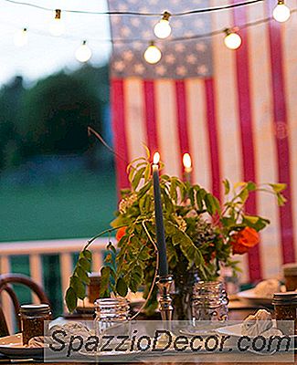Et stort flag hænger fra verandaen for en patriotisk berøring, der ikke går overbord, og snore af små pærelamper tilføjer lige den rigtige mængde belysning til en tidlig aftensmad.