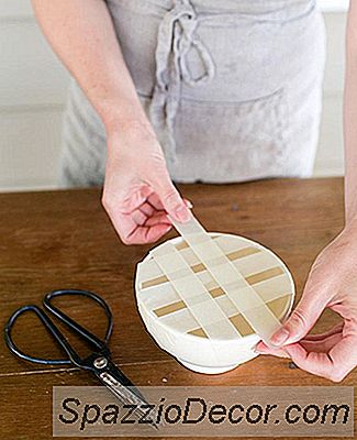 Med dit maskeringstape skal du begynde at opbygge et gitter over toppen af skålen. Gitteret hjælper med at holde stilkene på plads, især da skålen er så overfladisk.
