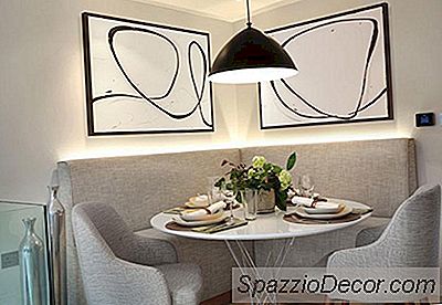 Når denne gulv trækkes dobbelt, huser den også spisestuen, der komfortabelt har plads til 6 i en skræddersyet monteret banket designet specielt til retur ved siden af trappen. Ved at tilføje en mat sort accent pendellampe over bordet og kunstværkerne ovenfor gjorde spisepladsen til sit eget særskilte rum, adskilt fra den boligareal, den deler.