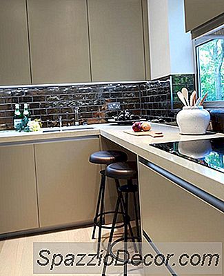Den bløde farvehistorie fortsatte til køkkenet med lyse khaki-enheder og en fløde sammensat bordplade. Tip: Hvis du arbejder med et stramt køkkenrum, kan du overveje en lille morgenmadsbar som denne, der kan bruges til tilberedning af måltider eller til at sætte dig ind i en hurtig bid.