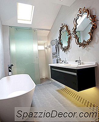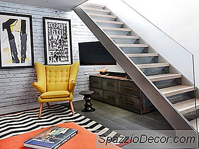 LLI Design-teamet startede fra bunden og opdaterede den gamle trappe, der førte til stueetagen med et glas- og ståldesign, der åbner hele niveauet. De fjernede også de indvendige vægge og tilføjede dristige, farverige møbler for at gøre området lysere, da det manglede naturlig belysning. Tip: Kan du lide udseendet på en struktureret væg? Væggene på dette niveau er dækket med tapet, der skaber en ulykkelig malet mursteneffekt.